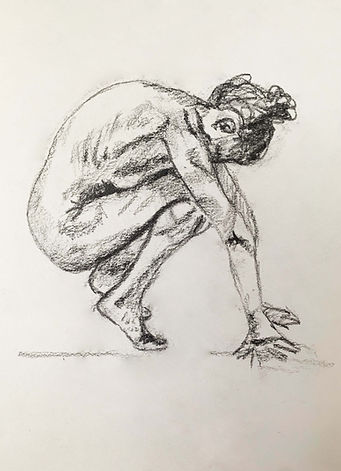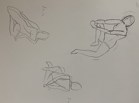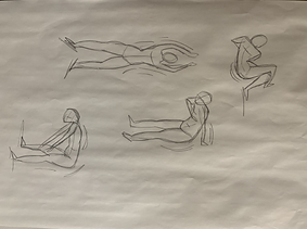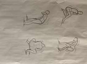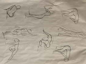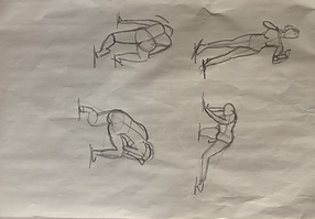 Here are some short poses. Different positions of the body changing shape and size. The poses ranged from 10 seconds - 2 minutes. These exercises were done in order to draw the body with the leading lines and keys shapes to portray the movement.